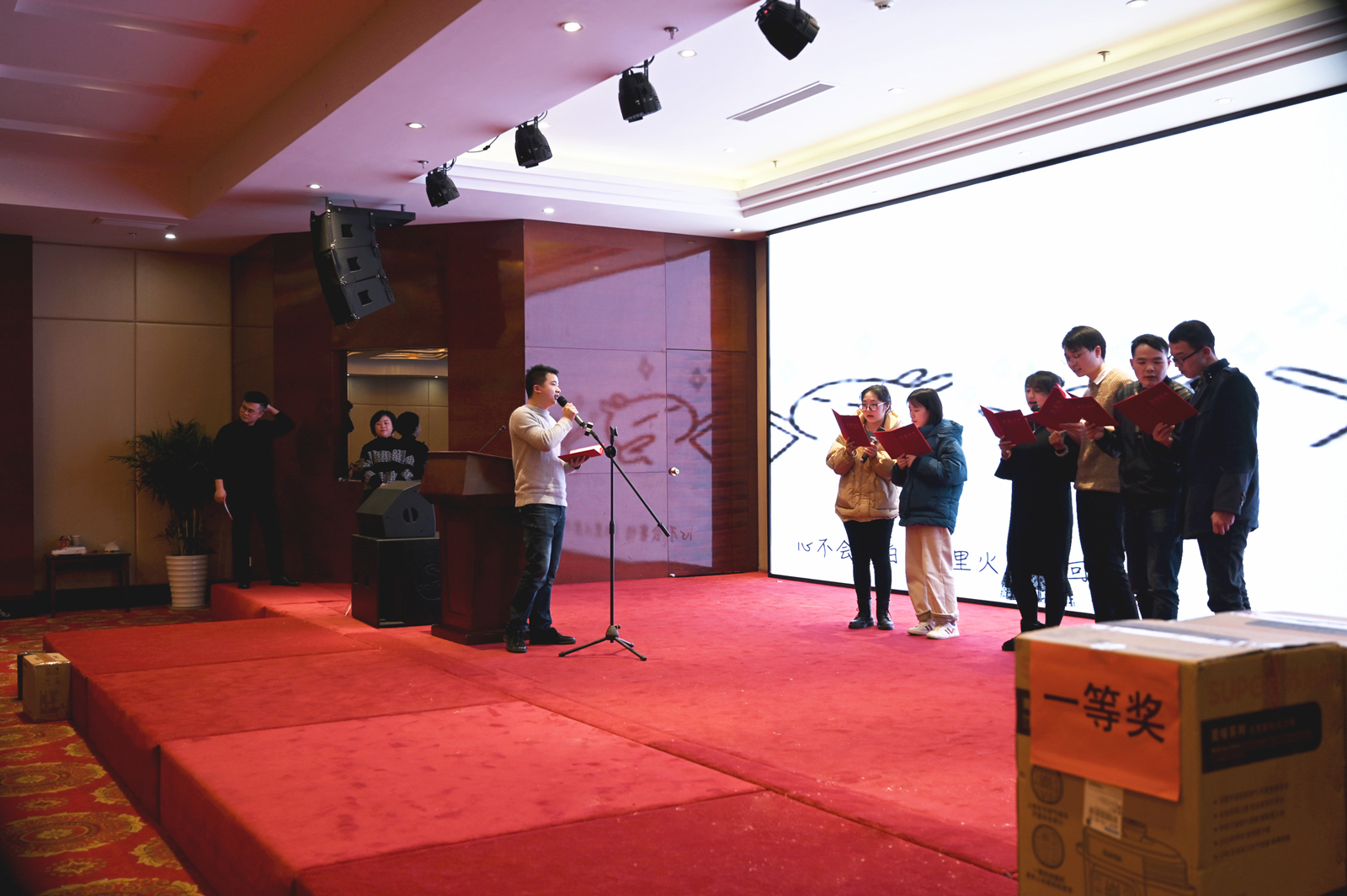隨后副總經理鮑時信宣讀《2019年度先進集體和先進個人表彰決定》,對在過去一年里表現突出的先進集體和先進個人進行表彰,并號召全體員工爭先學優,為公司發展貢獻力量。與會領導為受表彰的先進集體和先進個人頒發的獎狀和獎品。先進個人代表張琢、呂秀華分別上臺做表態發言,表示在新的一年里,不忘初心,再創佳績,為公司發展繼續努力奮斗!