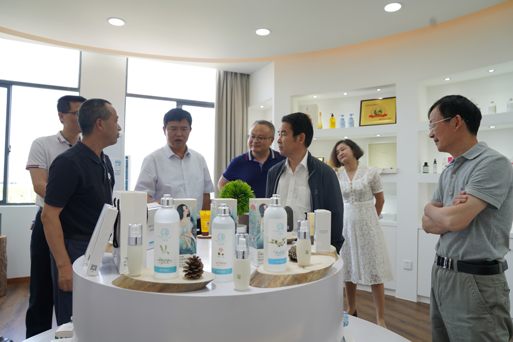 在成品展廳,張昌宏總經(jīng)理重點(diǎn)介紹了公司自主品牌“花寄語”新品開發(fā)情況,張正竹還親自體驗(yàn)了部分產(chǎn)品。當(dāng)了解到“花寄語”產(chǎn)品以植物護(hù)膚為核心理念、以本地特色植物為原料的發(fā)展思路后,張正竹非常高興,對公司的快速發(fā)展和精準(zhǔn)定位給予充分肯定和高度贊揚(yáng),并就如何進(jìn)一步開發(fā)本地特色作物在化妝品中的應(yīng)用提出了許多寶貴意見。