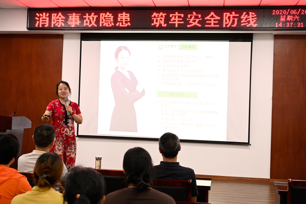本次培訓(xùn)特邀國家安全工程師、黃山市職業(yè)衛(wèi)生專家組成員、資深EHS經(jīng)理人于芹老師主講。于芹老師以《交通安全&手部安全》為主題,結(jié)合大數(shù)據(jù)和典型案列,生動巧妙地向廣大員工普及安全法規(guī)、交通安全、職業(yè)健康、安全紅線等知識,提高了員工安全意識和安全行動力。