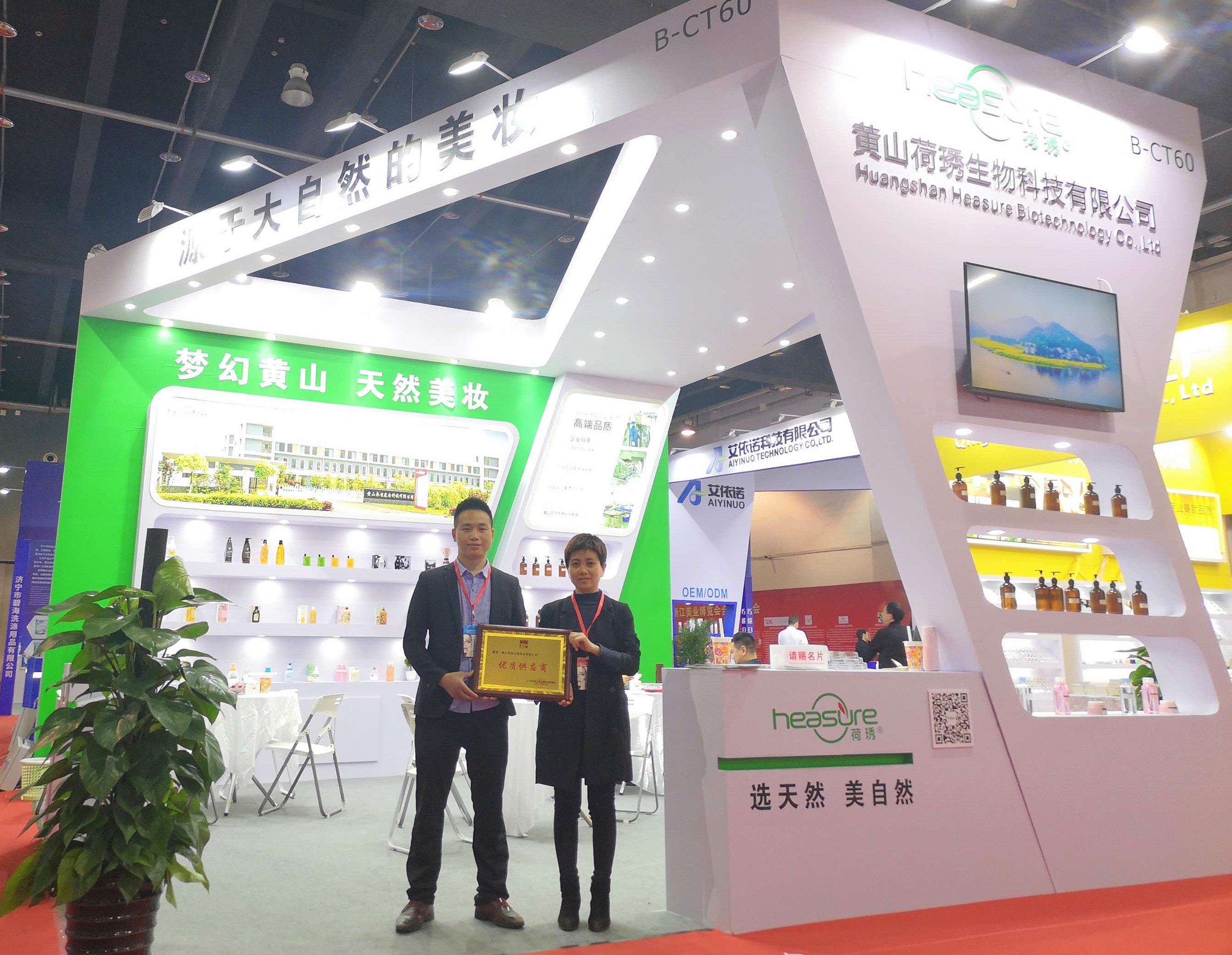 黃山荷琇以“夢幻黃山,天然美妝”為展會主題,攜富有黃山地域特色的化妝品亮相本屆美博會。新穎的展臺、特色的產(chǎn)品,吸引了一大批國際客商駐足體驗(yàn)、咨詢。現(xiàn)場氣氛火爆。